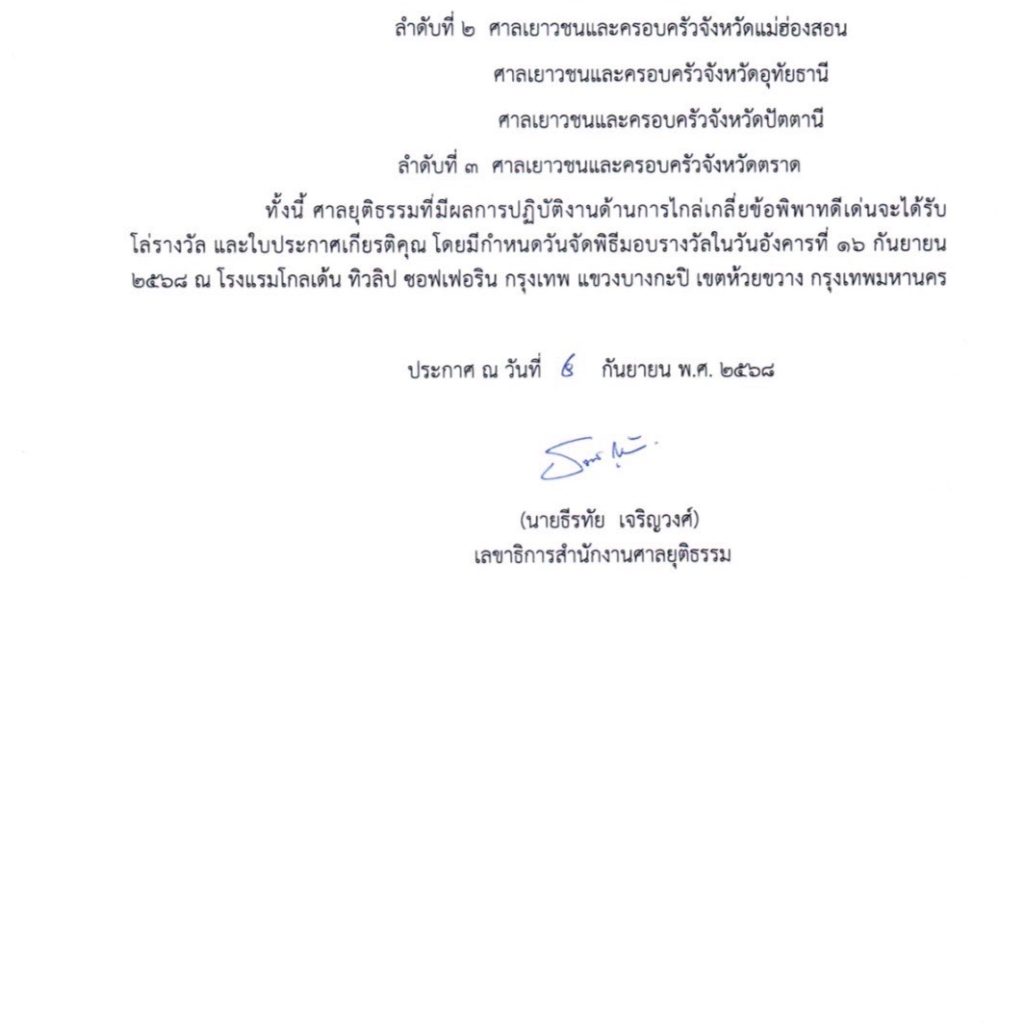 ศาลยุติธรรมประกาศผลการปฏิบัติงานด้านการไกล่เกลี่ยดีเด่น September 8, 2025September 8, 2025 admin กิจกรรม ประกาศผลศาลยุติธรรม (COURT OF JUSTICE) ศาลยุติธรรมที่มีผลการปฏิบัติงาน ด้านการไกล่เกลี่ยดีเด่นโครงการร่วมใจไกล่เกลี่ย 2025 ตรวจสอบรายชื่อศาลและตอบรับเข้าร่วมพิธี ไกล่เกลี่ยสำนักงานศาลยุติธรรม สำนักส่งเสริมงานตุลาการ mediation.coj.go.th CIPITC ชมรมผู้พิพากษาสมทบ ศาลยุติธรรม โครงการร่วมใจไกล่เกลี่ย admin